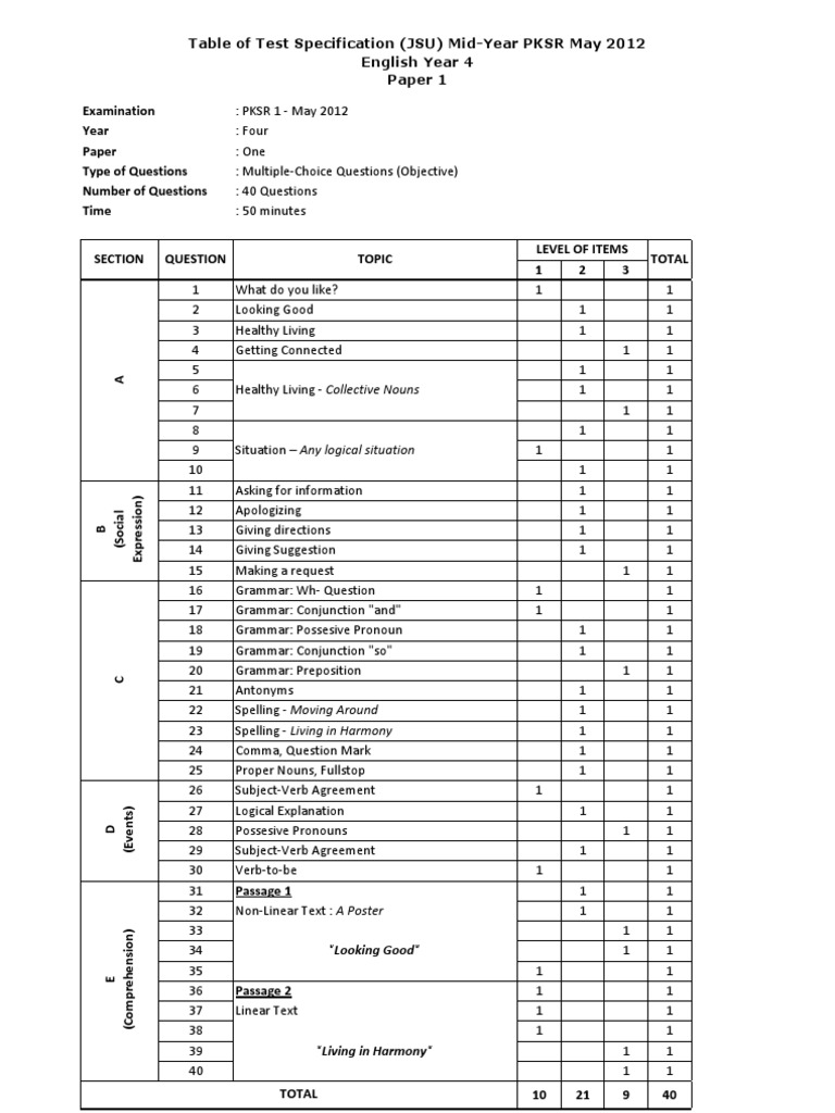 Jsu Bahasa Inggeris Pemahaman Ujian Mac Docx Jadual Spesifikasi Ujian Jsu Ujian Mac Tahun 4 2019 Bahasa Inggeris Pemahaman 013 Section Questio N Course Hero